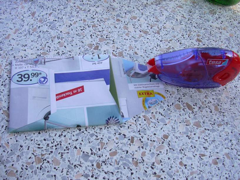 Die Papierlaschen werden dabei mit einem Kleberoller fixiert.