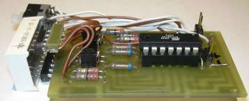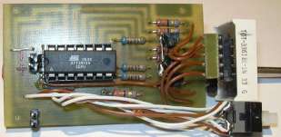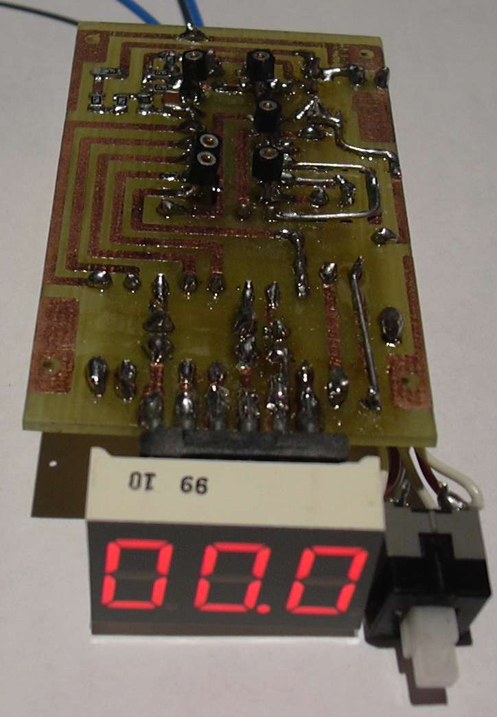 Statt der angegebenen 330 Ohm für die Segment-Widerstände wurden 510 Ohm verbaut, bei 5 V ist das hell genug. Das Display ist über eine zerschnittene Präzisions-IC-Fassung angeschlossen, es handelt sich ja um einen Prototypen zur Erprobung von Hardware und Software.