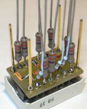 Nun müssen die Widerstandsdrähte in die Controllerplatine eingefädelt werden. Ich bin am Überlegen, ob ich nicht die Widerstandslötaugen mit der Dremel-Diamantscheibe schlitze, um die Drähte seitlich einlegen zu können.