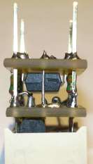 Nun hatte ich doch noch einen Zehner-Streifen Widerstände kleinerer Bauart mit 330 Ohm ausgegraben, worauf ich das zweite Exemplar damit bestückt habe, was die Bauhöhe etwas reduzierte. Gut zu erkennen sind die gekröpften Anschlussdrähte der Basiswiderstände, die den Versatz der Lötpunkte auf der Displayplatine kompensieren.