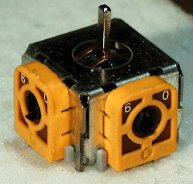 ![]() Inzwischen ist aber der 4433 nicht mehr erhältlich. Auch ist das damalige Programm aus heutiger Sicht sehr anfängerhaft programmiert. Und dann habe ich inzwischen diese kleinen Mini-Kreuzknüppel (siehe Bild) beschafft, die die Bedienung vereinfachen. Es kommt nun ein ATmega48 zum Einsatz, der mit dem internen 8MHz-Takt und Vorteiler 8 betrieben wird, also mit 1MHz Taktfrequenz arbeitet. Dieser verfügt über 6 Analogeingänge, die von drei Mini-Kreuzknüppeln angesteuert werden. Aus Kompatiblitätsgründen bekam die Anlage sieben Kanäle. 6 echte Analogkanäle und ein Kanal, mit dem mittels vier Taster Schaltimpulse gegeben werden können. |