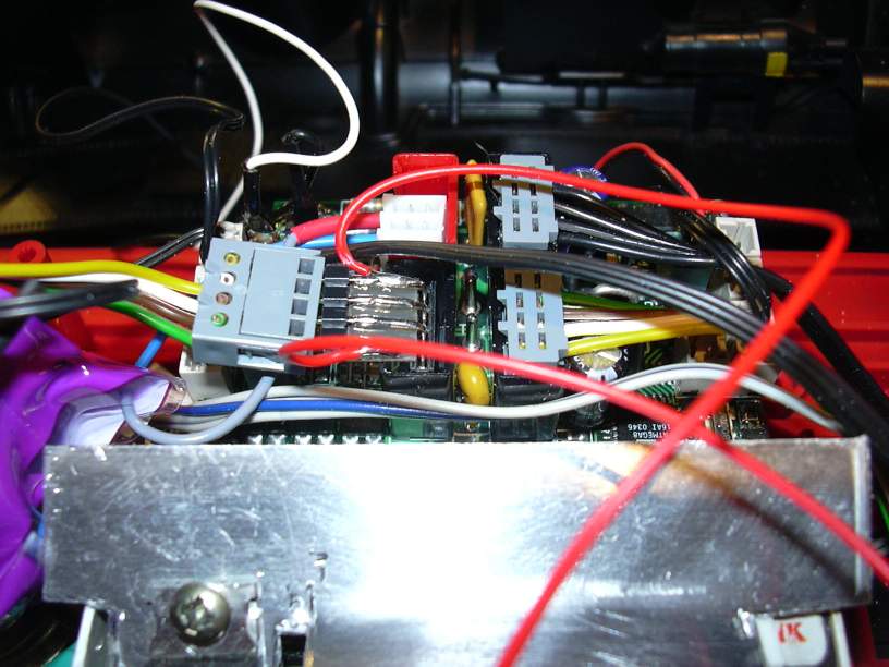 Um den Motor an das Soundmodul anschließen zu können, wurde ein Adapter gebaut, über den das linke Triebwerk angeschlossen ist. Dort sind die beiden roten Strippen zum Soundmodul angeschlossen.