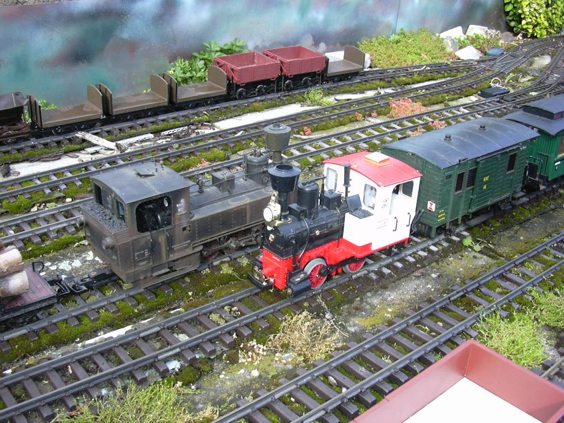 Das Ding heißt inzwischen "Einstain" (EINzeller-STAINz) und trifft sich gerade mit "Luise", der rostigen Waldbahnlok der Baureihe "U", die gerade nach dem Einbau eines fernsteuerbaren Entkupplers zum Besitzer zurück kehrt.
