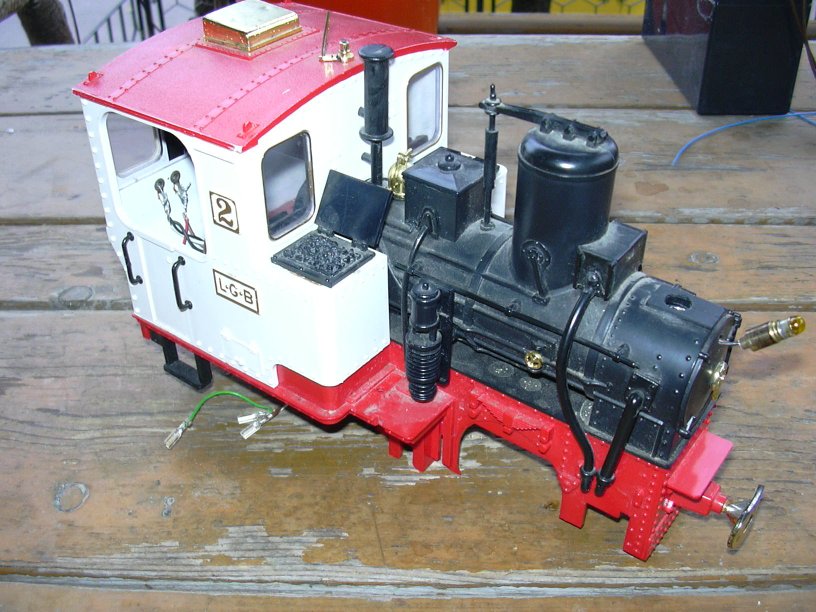 So, jetzt ist alles im Kessel drin, der Deckel (Armaturentafel) ist auch drauf. Die Strippen zum Triebwerk wurden nun doch gleich nach unten gelegt. Vom Führerhaus wurde der Ring unter dem Kessel abgetrennt, damit es sich auch nach montiertem Kessel aufsetzen lässt. Ansonsten wäre das Strippenwirrwar nicht zu bändigen.