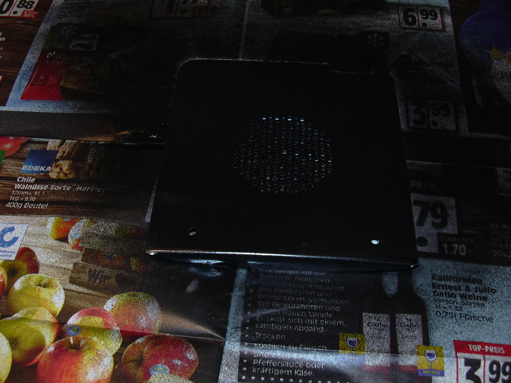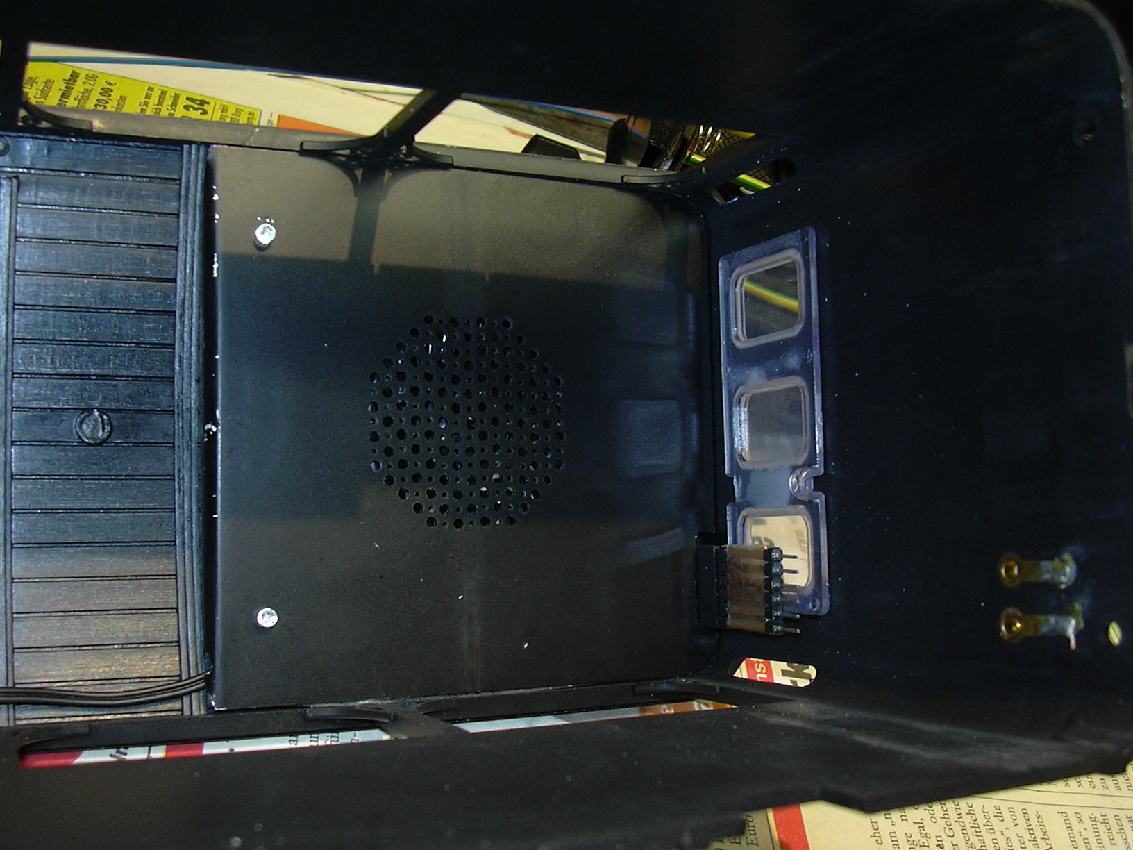 Sie dient zur Aufnahme eines flachen Lautsprechers und zweier LEDs (Innenbeleuchtung).