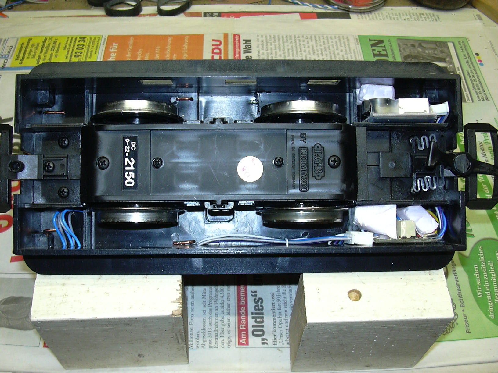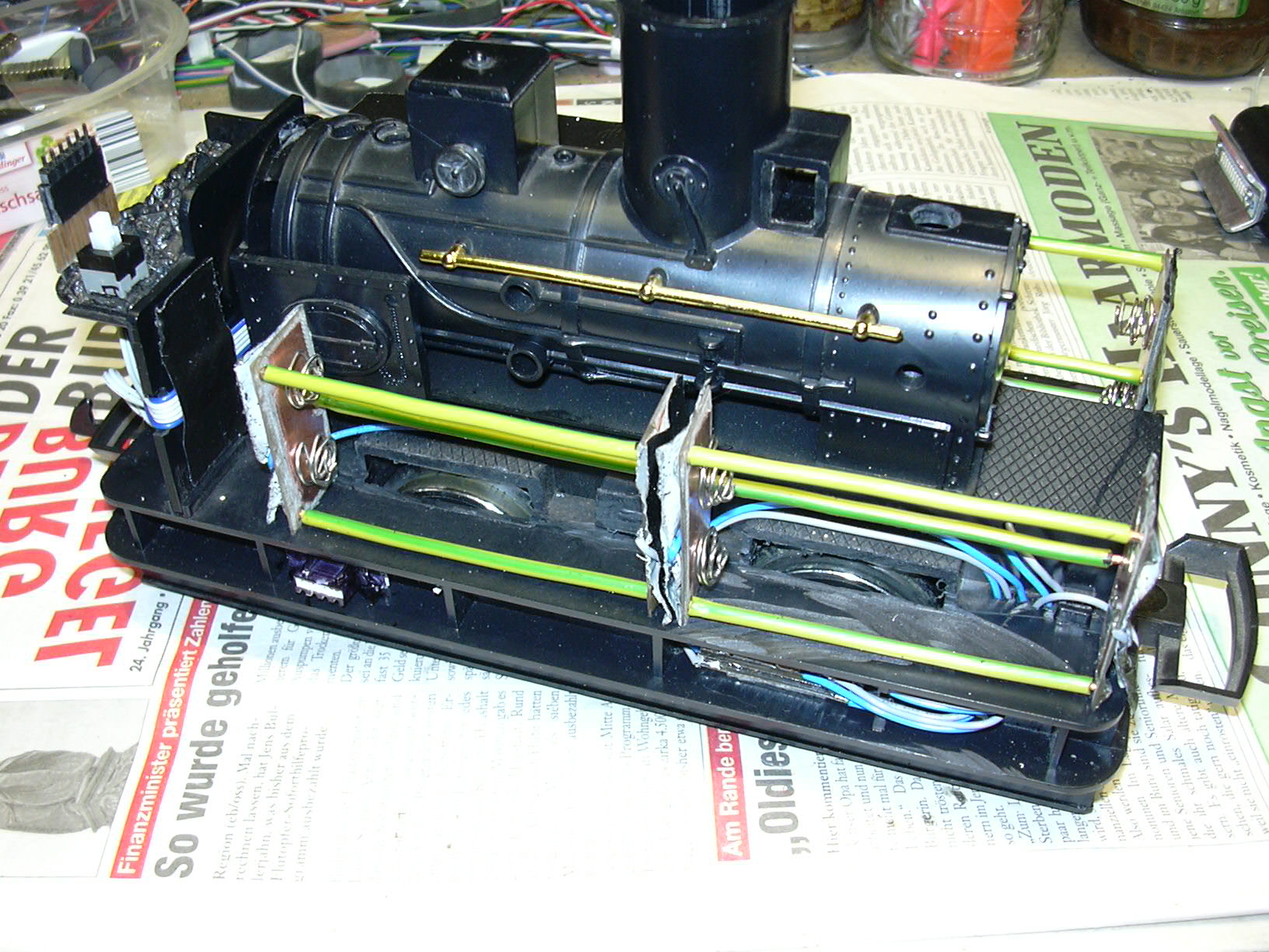 Da der Platz für Einbauten in der Lok kleiner als zuvor vermutet ist, mussten einige Komponenten unter dem Rahmen platziert werden.