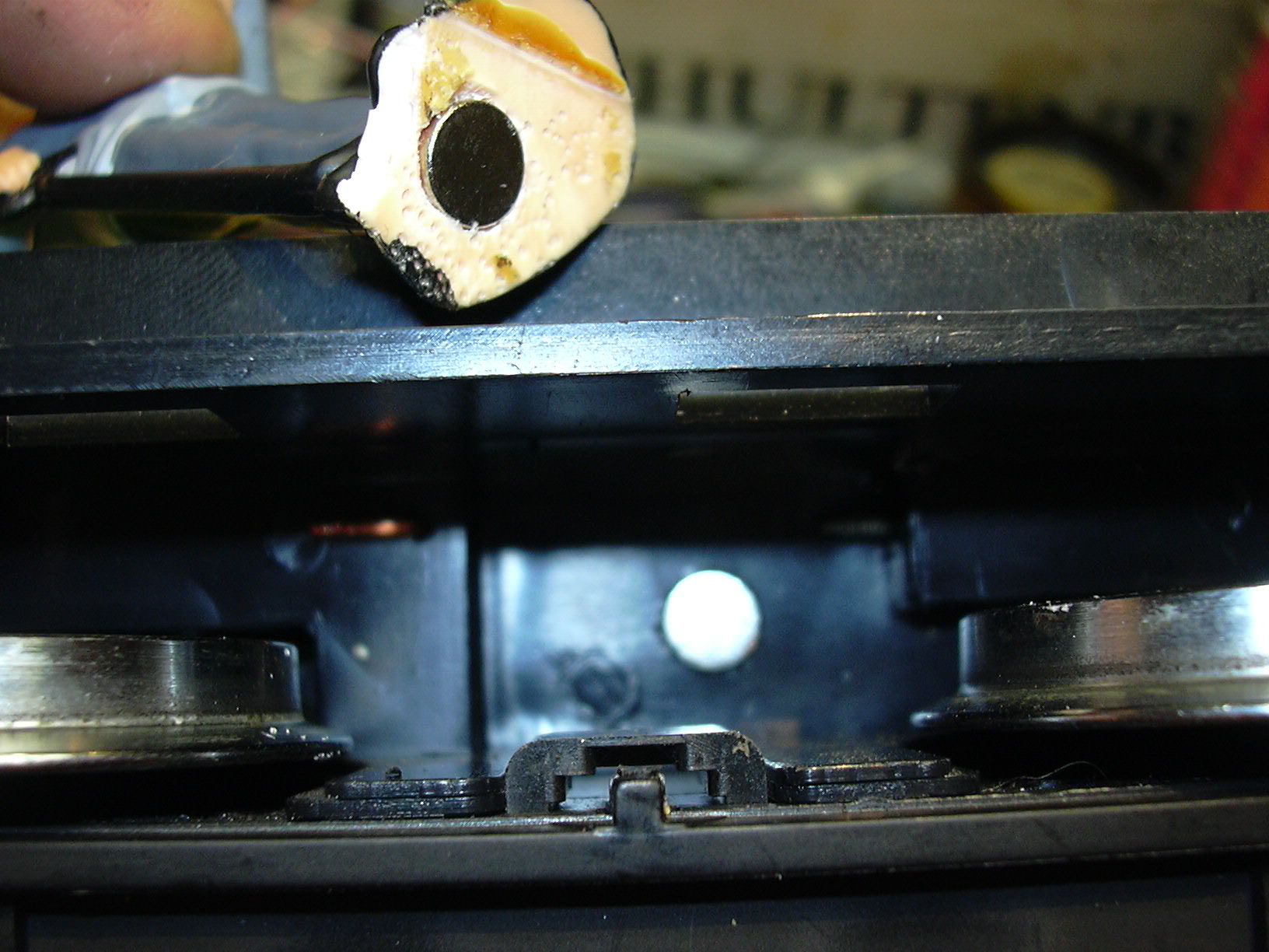 Nun bleibt er standhaft und sogar drehbar an seinem Platz stehen, ohne das Öffnen der Lok zu behindern.