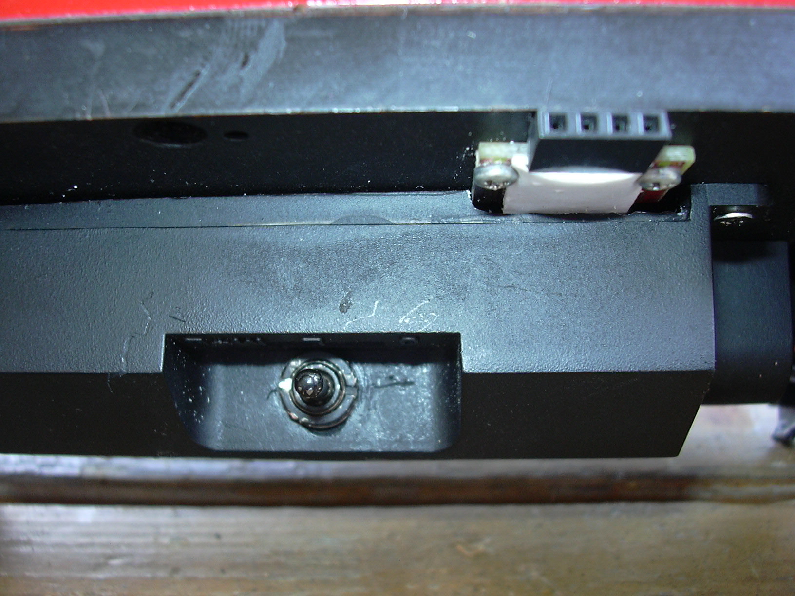 Die weiße Kunststoffplatte rechts vom Elektronik-Block muss noch entfernt werden um die Kabel versenken zu können. Dies soll aber der Eigentümer selbst machen, denn er hat einen atombombensicheren Klebstoff verwendet und ich will keinen unnötigen Schaden anrichten...