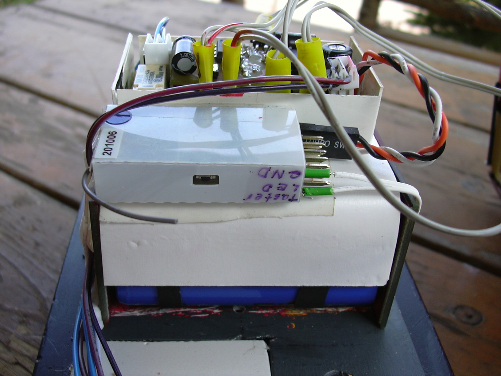 Akkus (3 mal 2 Zellen Li-Ion 18650) und Elektronik wurden als kompakte Einheit auf dem Fahrzeugboden montiert.