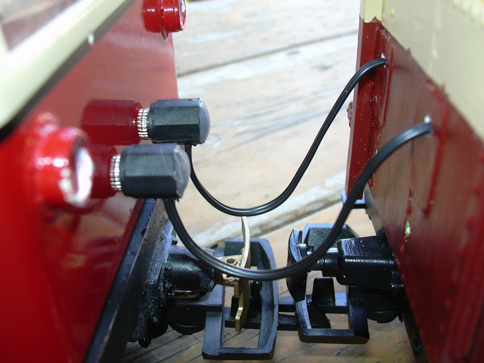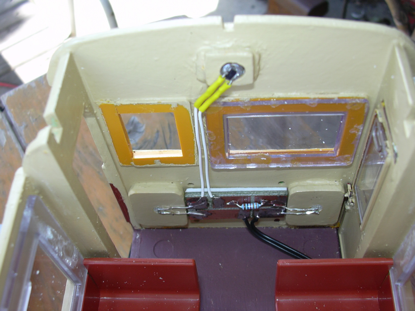 Die Heckbeleuchtung von innen. Ein Schutzwiderstand verhindert Beschädigung der LEDs vei versehentlichem Vertauschen der Steckverbinder beim Kuppeln der Fahrzeuge.