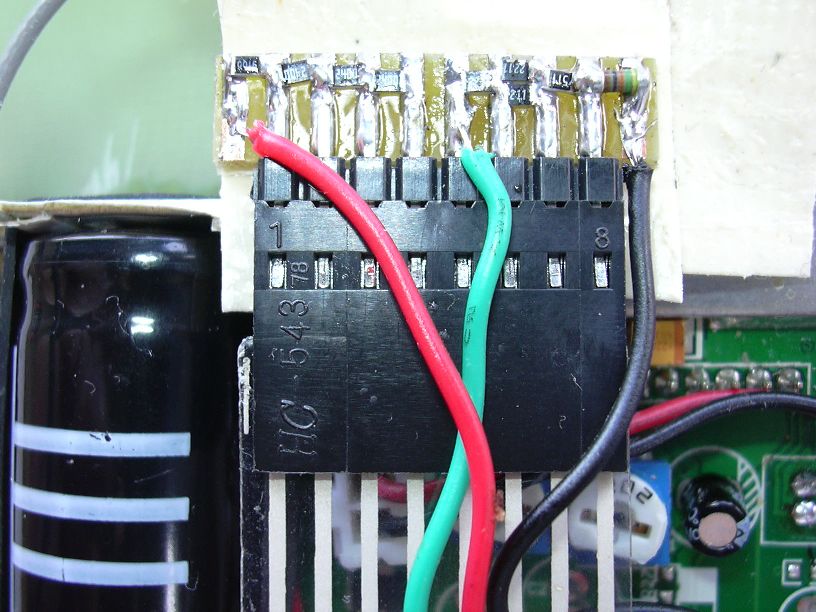Hier ist das Poti-Kabel eines Originalpotis an die Widerstandskombination angeschlossen.