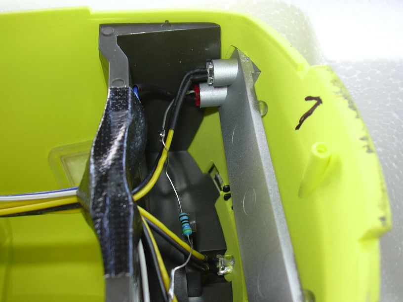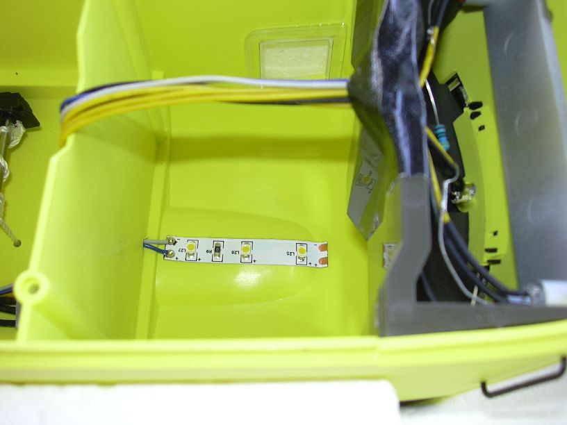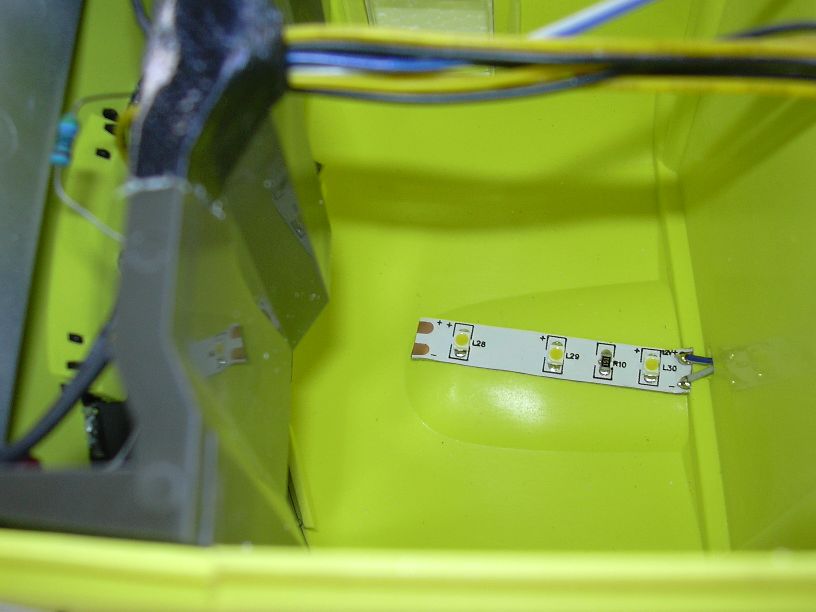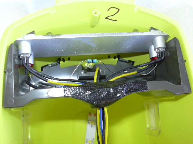Zuerst wurden mal rote LEDs für die Schlusslichter nachgerüstet, die Aufnahmen dafür sind ja in der Karosserie bereits vorhanden.