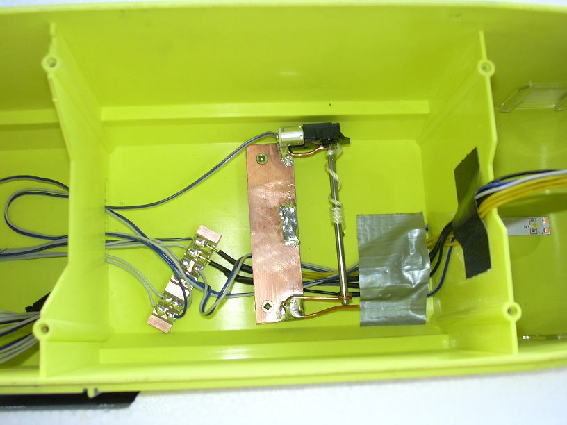 In den vorderen Zwischenraum wurde eine Verteilplatine für die Lichtleitungen (Scheinwerfer, Rücklicht und Führerstandslicht vorn) eingesetzt und eine Seilwinde für den Antrieb der Stromabnehmer montiert.