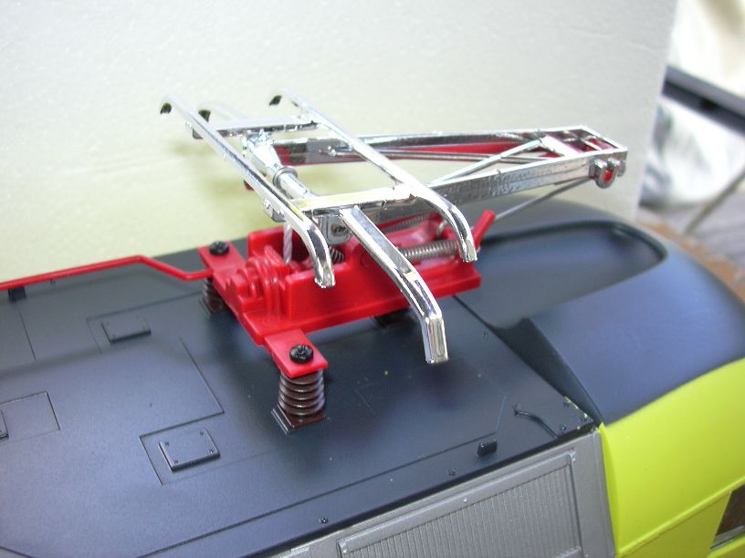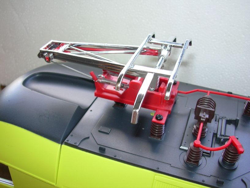 Der vordere Stromabnehmer wurde mit dem Zugseil verbunden. Die Rastnase für die untere Stellung wurde entfernt.