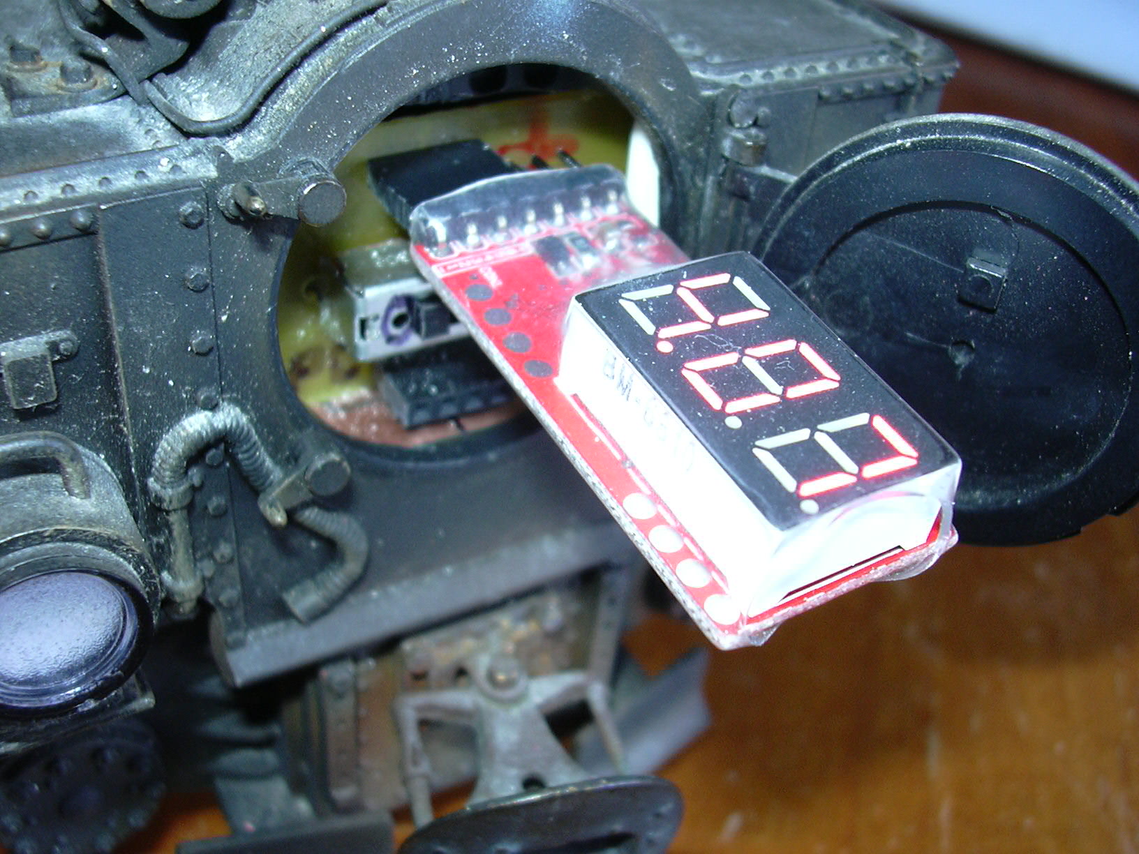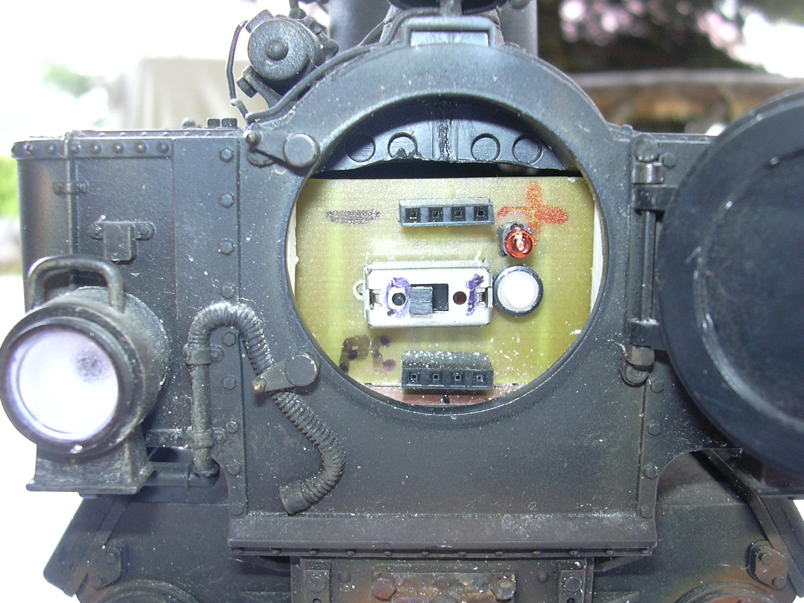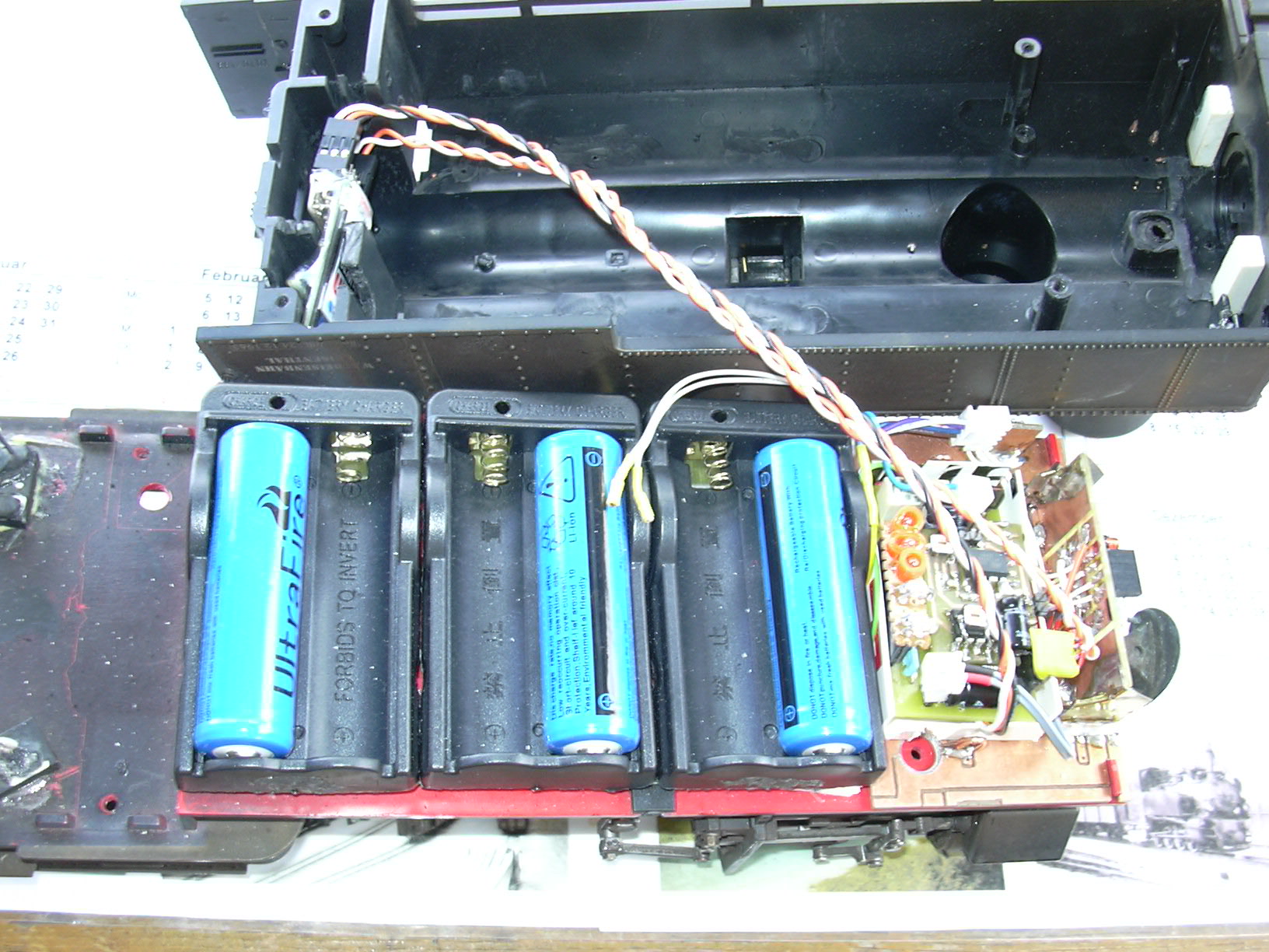 Sicht von der anderen Seite. Die Strippen werden dann im Kessel oberhalb der Akkus verlegt. Da kommen dann ja auch noch die Strippen für Licht und Lautsprecher dazu.