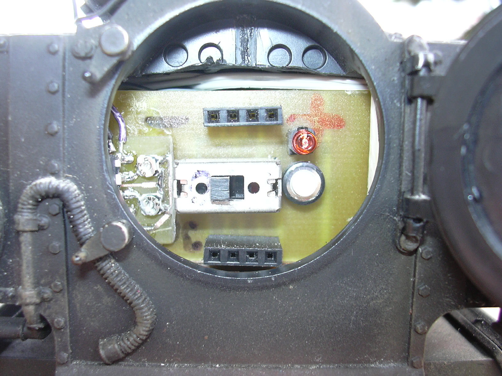Und so sieht's vom Weiten aus, etwas duster, aber es war ja auch schon spät... Auf den Nachläufer wurde ein Streifen aus etwas dickerem Epoxy-Platinenmaterial angebracht, der hinten aus der Lok heraus ragt.