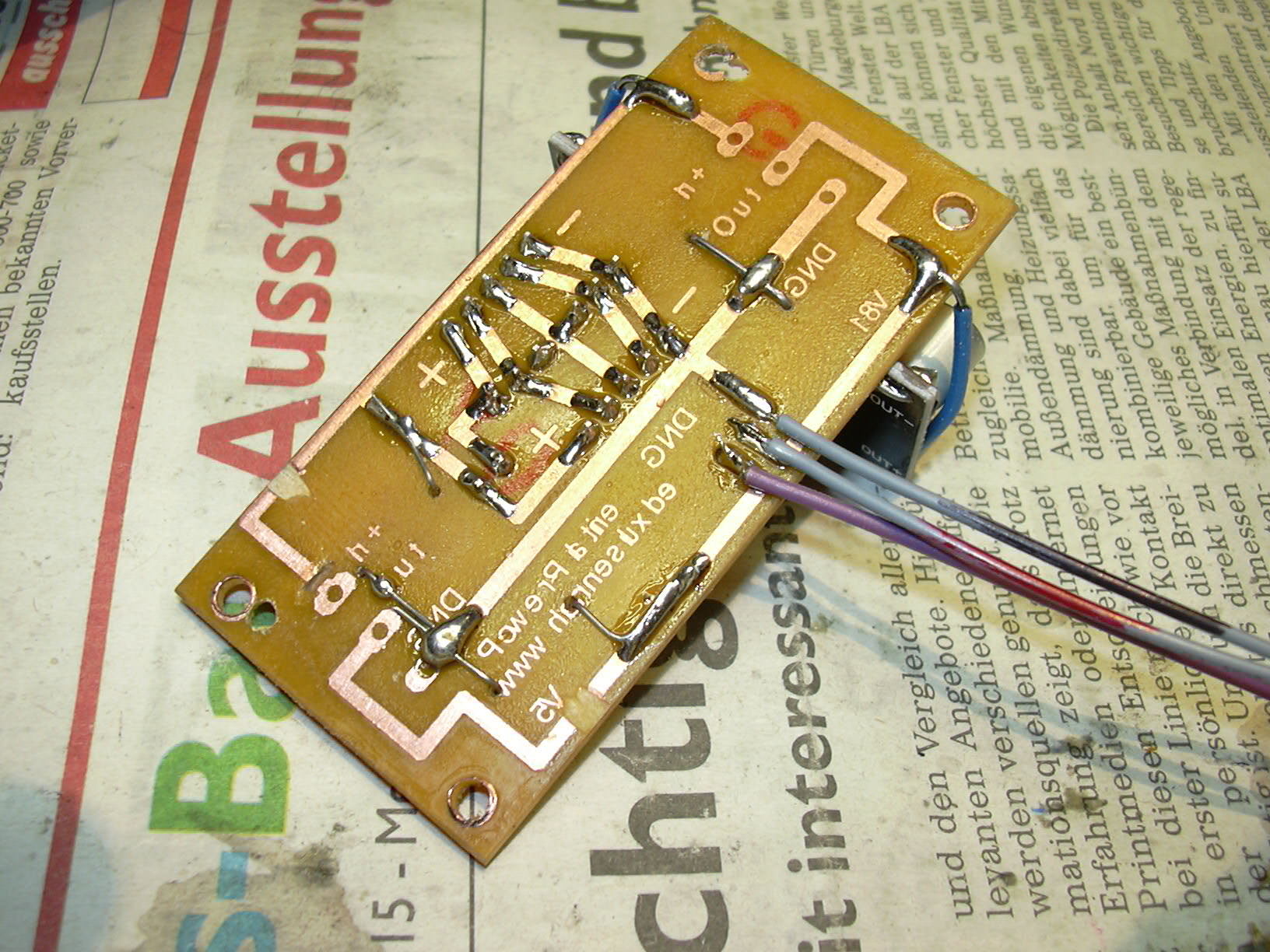 Der Rest des Rohlings wurde mit kleinen Adapterplatinchen zum Anschluss der Funkempfänger an Lokfahrtregler anderer Projekte gefüllt.