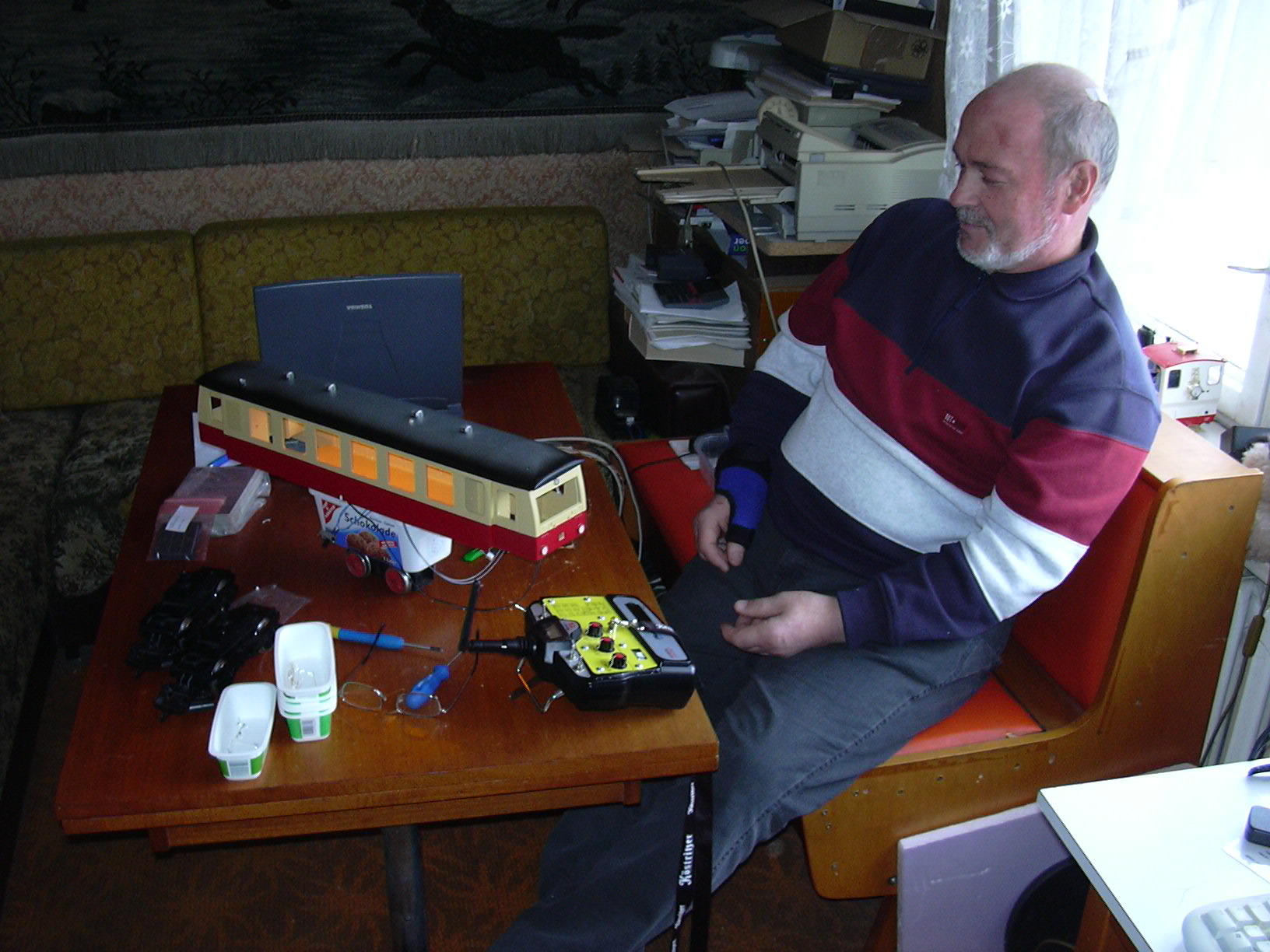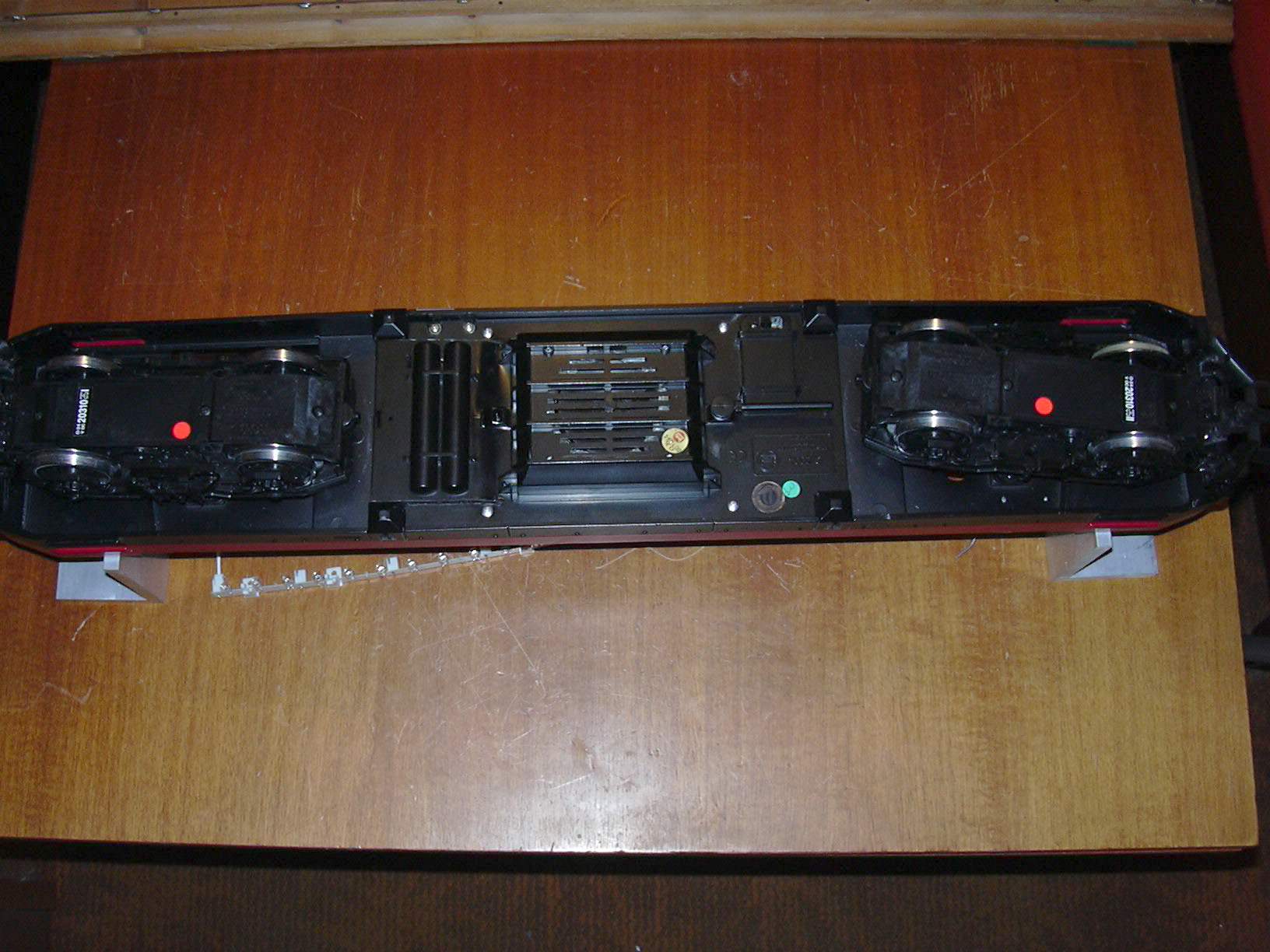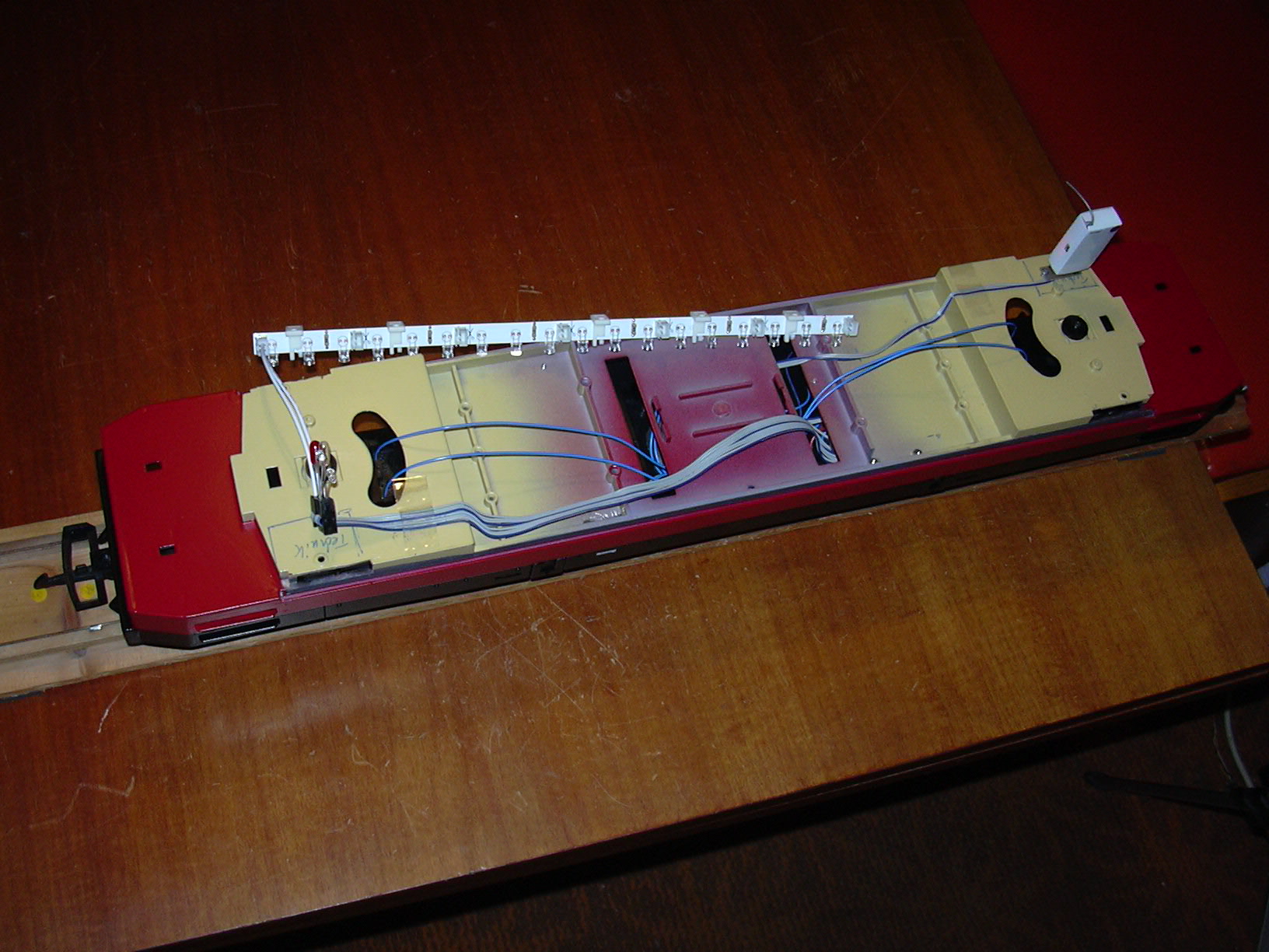 Und das hier ist die zugehörige Karosse beim Test der Fahrgastraumbeleuchtung. Der Einfachheit halber wurde die Beleuchtung mal schnell mit dem Fahrtregler des rollenden Schoko-Eisbechers getestet.